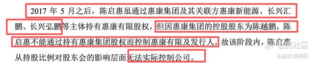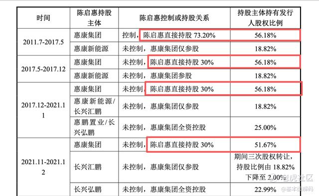 根据财通证券周斌烽,熊吴倩撰写首轮问询回复,自2001年9月惠康有限设立至2017年5月长达16年的时间里,陈启惠一直直接持有控股股东惠康集团73.20%的股权,是惠康科技毫无争议的绝对控制人。然而,2017年5月这一时间点极为敏感,恰逢惠康科技筹备资本运作的关键期,陈启惠突击将惠康集团的控制权转让给陈越鹏,自身持股比例降至30%。