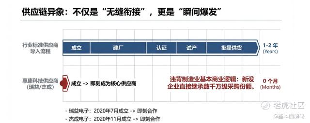 在正常的商业逻辑中,一家新成立的制造型企业,通常需要经历厂房建设、设备调试、试生产、样品认证、小批量供货、产能爬坡等一系列漫长的过程,通常耗时 1-2 年。然而,瑞益电子和杰成电子仿佛是“含着金钥匙出生”,在成立当月或次月即成为惠康科技的核心供应商,直接继承了数千万级别的采购份额。