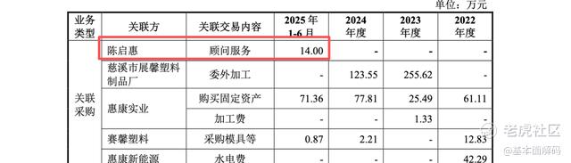 在首轮问询回复的“关联交易”章节中,披露了陈启惠向惠康科技提供“顾问服务”并收取费用的记录。这一细节彻底击碎了财通证券周斌烽,熊吴倩关于“陈启惠不参与经营”的辩解。
