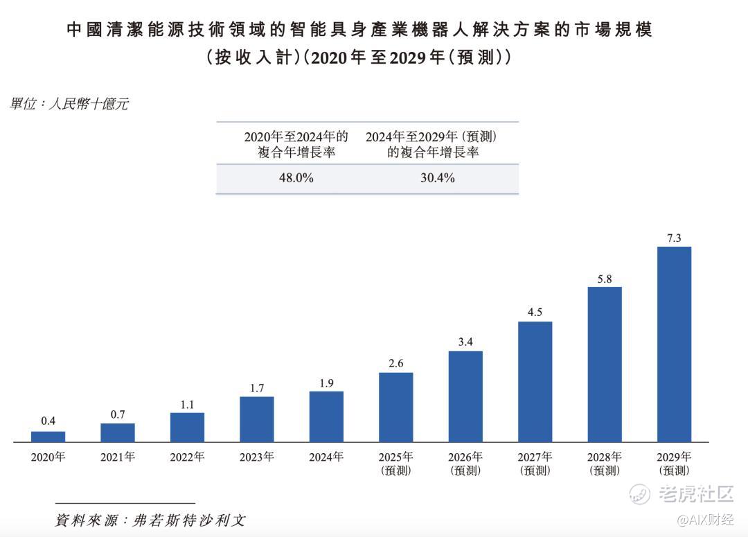 招股书显示,过去五年,中国具身AI机器人是全球市场的核心增长引擎,市场规模从2020年的125亿元增长至2024年的287亿元,复合年增长率达到23.1%。预计到2029年,具身AI机器人的市场规模将达到1101亿元,2024年至2029年的复合年增长率将进一步提升至30.9%。