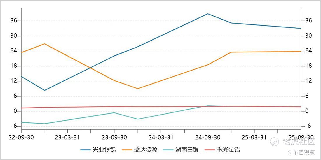 2025年前三季度,兴业银锡、盛达资源、湖南白银、豫光金铅净利率分别为33%、23.8%、1.8%、1.8%。显然,中游赚取的是加工费,属于低毛利制造业,生意模式远不如上游。