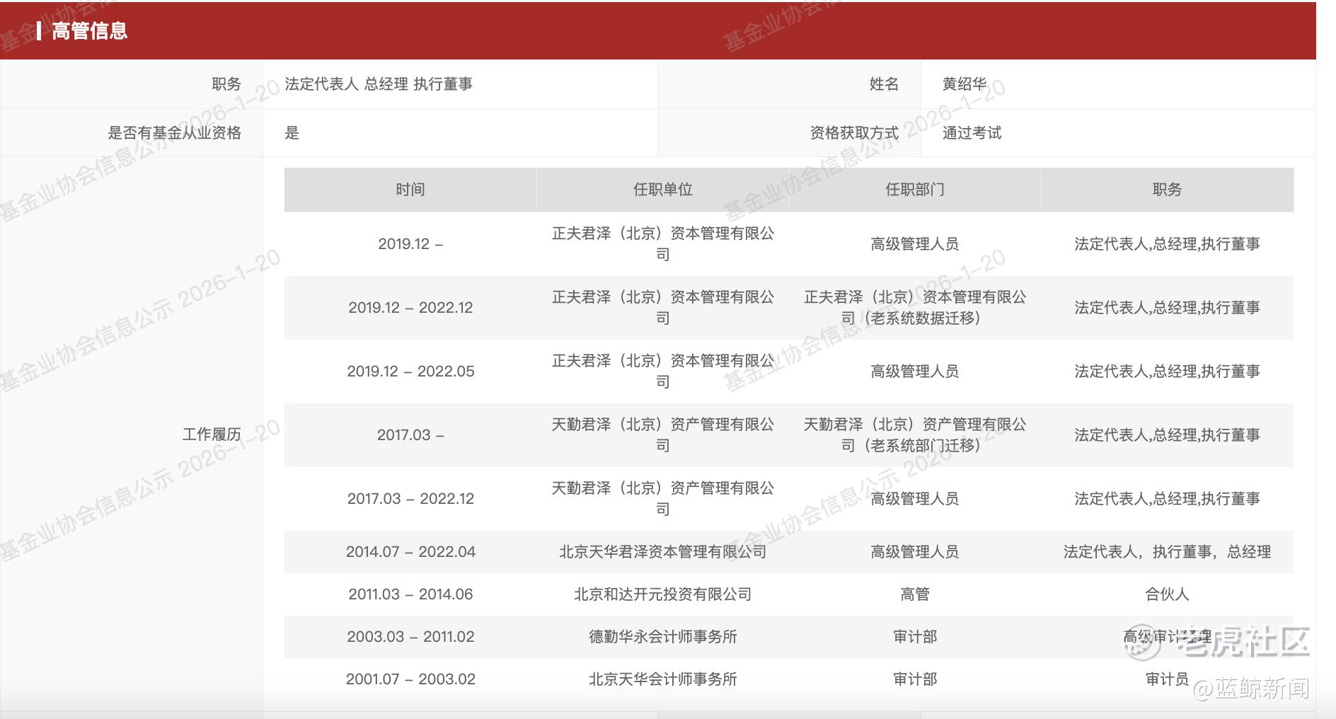 黄绍华工作履历。(图片来源:中基协网站)