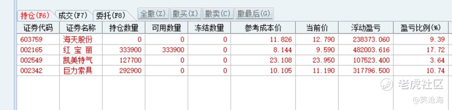 今天直接冰点开,低开高走,临近午盘又压了节奏,这几天指数倒是完全贯彻了“稳字当头”,如果真按去年五六月的圆弧型震荡走势,指数也需要先等下方的均线收拢,也就几乎不存在立即上攻的可能,后续等到地量和均线后,刚好差不多是1月底年报预告阶段性靴子落地后,便有望迎来一年当中“日历效应”最强的时间段$海天股份(603759)$ $红宝丽(002165)$ $方正电机(002196)$ $巨力索具(002342)$ $凯美特气(002549)$