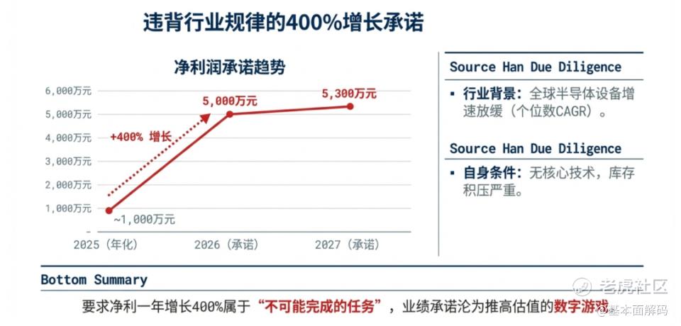 业绩断层:标的公司2025年1-9月净利润仅为780万元,年化约1,000万元。要实现2026年5,000万元的承诺业绩,意味着净利润需在一年内增长400%。在缺乏核心技术支撑、行业竞争加剧、全球半导体设备市场增速放缓(预计CAGR为个位数)的大环境下,这种爆发式增长几乎是不可能完成的任务。
