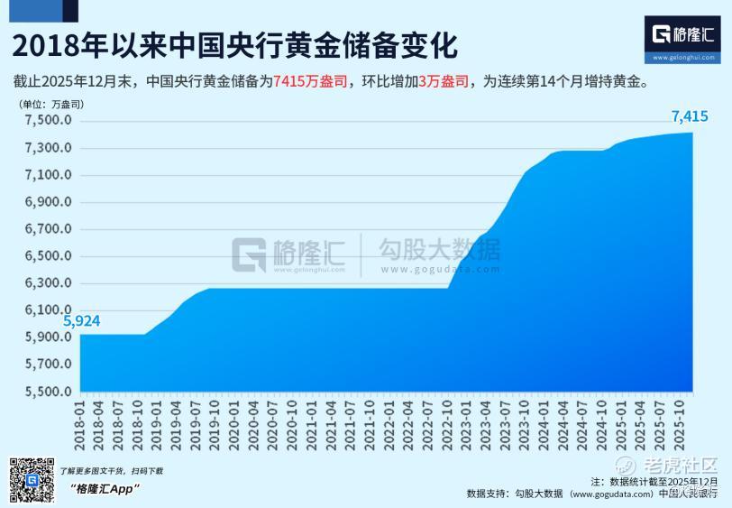 截至2025年12月,中国央行连续14个月增持,全年净购金约26.75吨,总量达2306.32吨,占外汇储备比重升至9.51%,创历史新高。