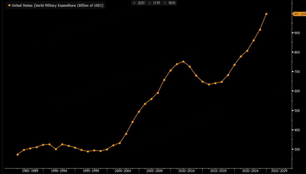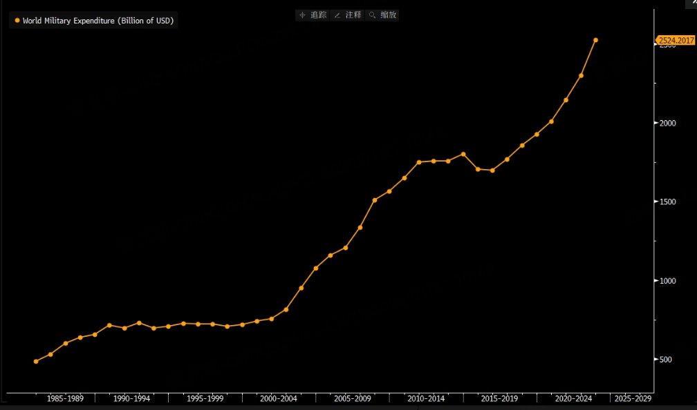 本质上是各国军费开支连年增长,如美国24年支出达到9973亿美元,同比增长8.9%,远超GDP!
