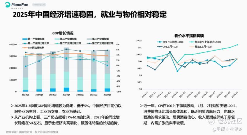 2025年的宏观经济表现出极强的韧性,但也面临着前所未有的结构性挑战。GDP增速的换挡、产业结构的深度调整以及消费心理的微妙变化,构成了移动互联网行业发展的基石。