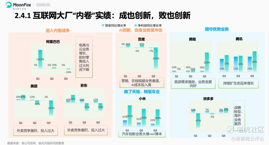 月狐数据发布的《2025年互联网年度盘点研究报告》显示,互联网大厂的竞争逻辑已发生质变,从单纯的流量争夺转向了硬件入口和底层技术的比拼。互联网大厂竞争格局呈现分化特征,腾讯、阿里巴巴电商与云业务增长显著,美团即时零售投入加大导致利润波动,小米转型车企后自身业务受冲击,拼多多、携程则凭借优势业务实现稳健增长。