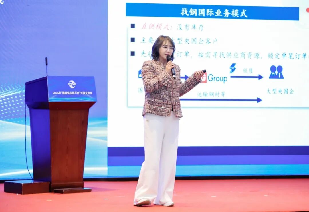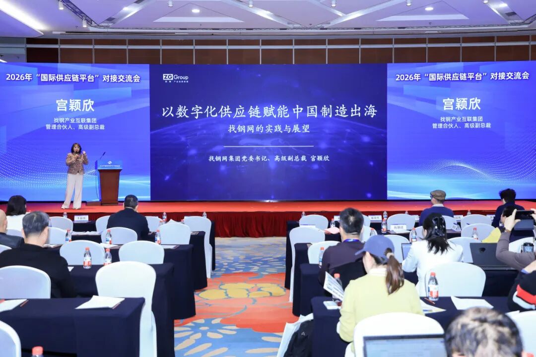1月21日,在2026年“国际供应链平台”对接交流会上,找钢网集团党委书记、管理合伙人兼高级副总裁宫颖欣向与会代表分享了找钢网以数字化创新助力中国制造出海的实践以及找钢国际的发展方向。