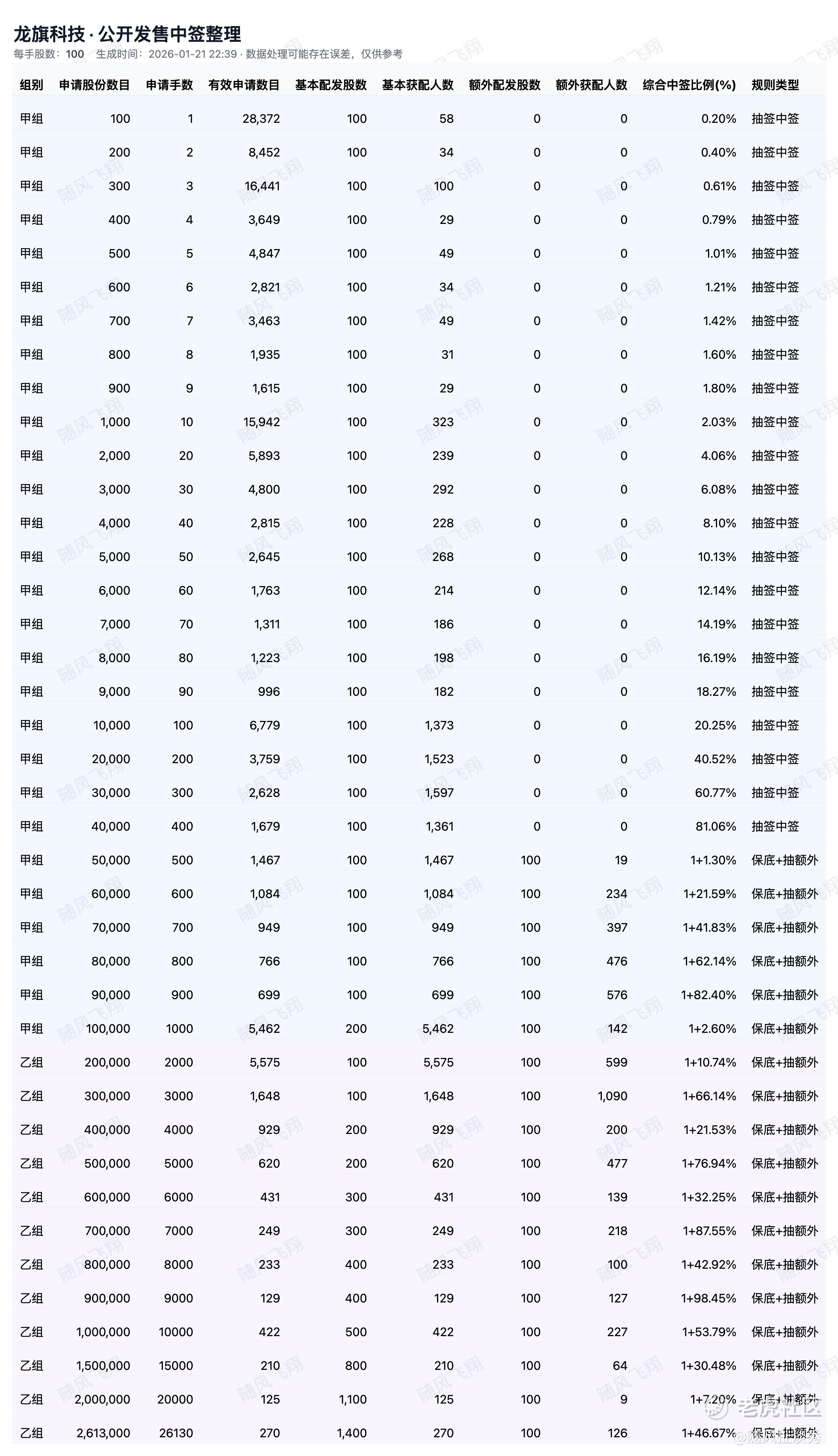 中签率公布!