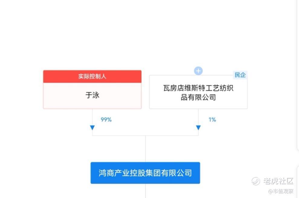 一般来说企业做到这么大,创始人的股份已经被稀释的很低了。但于泳完全不一样,他到现在依然掌握鸿商99%的股权。