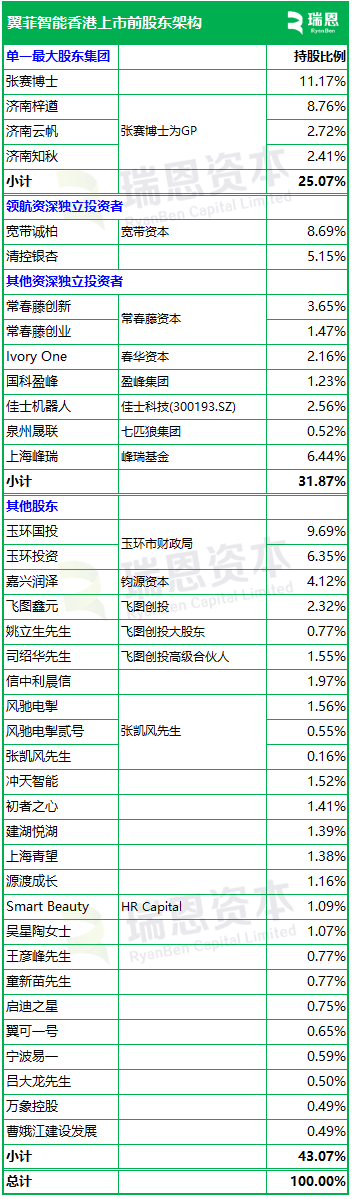 根据招股书披露,翼菲智能在香港上市前的股权架构中,