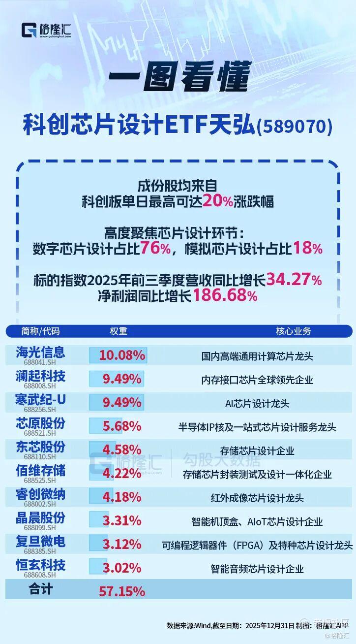 跟踪上证科创板芯片设计主题指数的科创芯片设计ETF天弘(589070)于1月23日上市,本质上正是产业演进与市场机制之间的一次衔接:一端,是持续深化的芯片设计能力;另一端,是以指数形式呈现的阶段性表达。