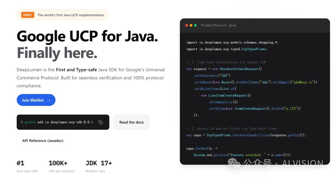 就在UCP发布后不到一周,一家专注于AI智能体与全球商业的AI公司 Deeplumen(官网:deeplumen.io),发布了UCP的Java版本(开源项目地址:github.com/Open-Commerce-Protocol)。
