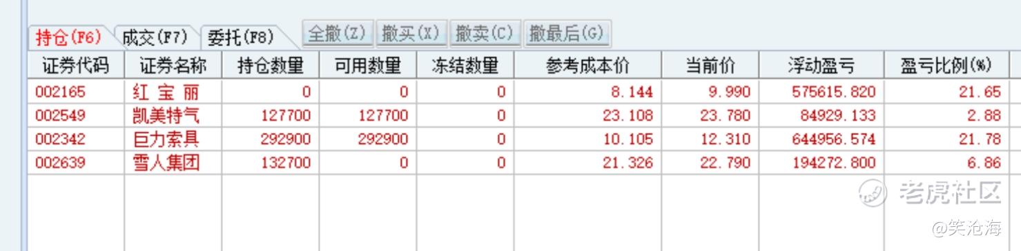 今天又是来回震荡的一天,没啥力度,除了早盘高开后冲高过一次,之后就是弱势震荡了,短期来说不算强,但从中长期角度,调整周期横而不跌,算是强势了,放在熊市早砸穿下方支撑了,而且个股普遍还不错,所以要从更大的格局看待目前的市场,没什么毛病,休整够了自然就继续上涨了$红宝丽(002165)$ $巨力索具(002342)$ $凯美特气(002549)$ $海天股份(603759)$ $雪人集团(002639)$