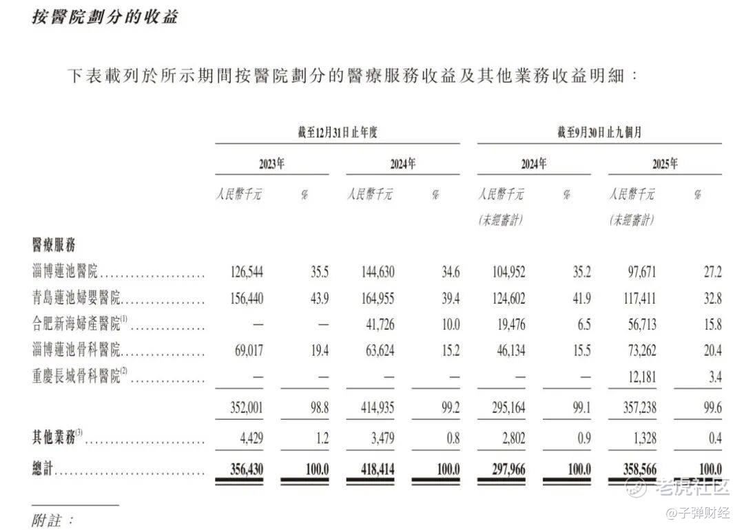 从营收结构来看,公司两家妇婴保健类医院均面临较大挑战。2025年前三季度,淄博莲池医院、青岛莲池妇婴医院分别实现收入9767万元、1.17亿元,同比下滑7%、6%。