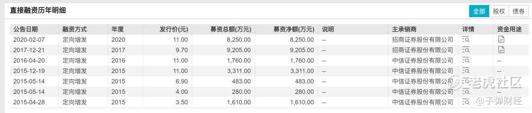 Wind数据显示,2015年至今,公司通过定向增发的方式累计获得了2.49亿元融资,融资主要用于运营资金、收购医院、偿还银行借款等。