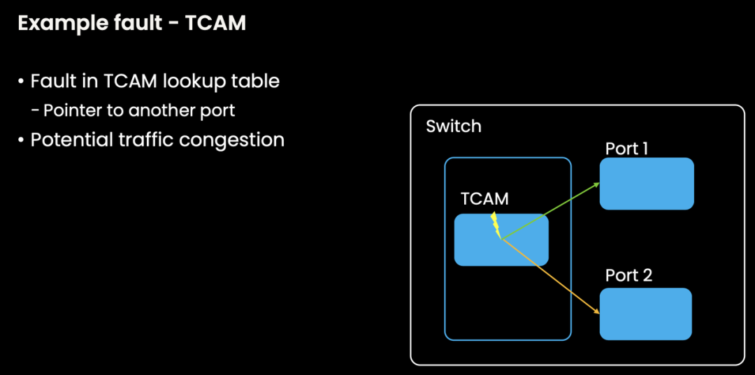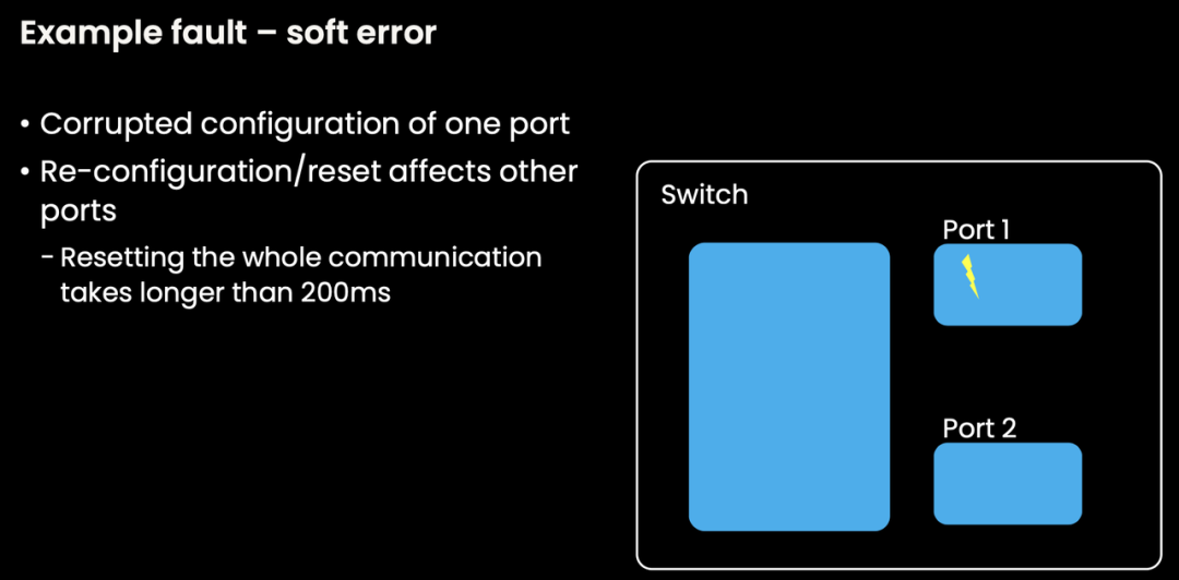 比如,端口对地短路会导致供电电压下降,影响同一供电域内的其他端口;TCAM故障可能导致转发表指向错误端口,引发流量异常甚至网络拥塞;软错误可能破坏端口配置,而全局重置又会导致超过200毫秒的通信中断,这对于MRM来说是不可接受的。