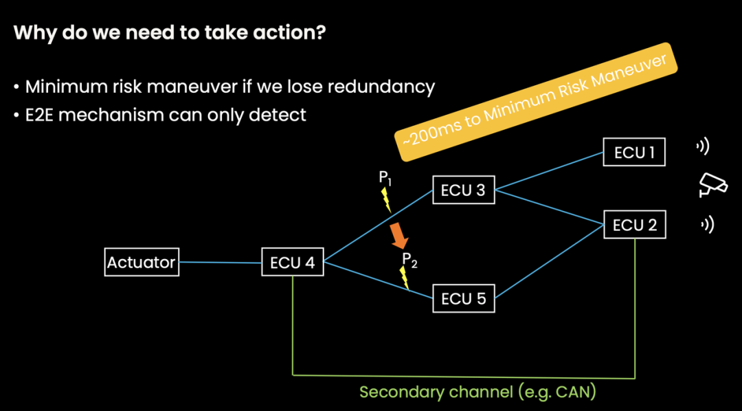 传统端到端(E2E)保护机制只能发现通信异常,却无法防止功能丢失,更无法阻止故障扩散。因此,网络本身必须具备容错能力和结构性隔离能力。