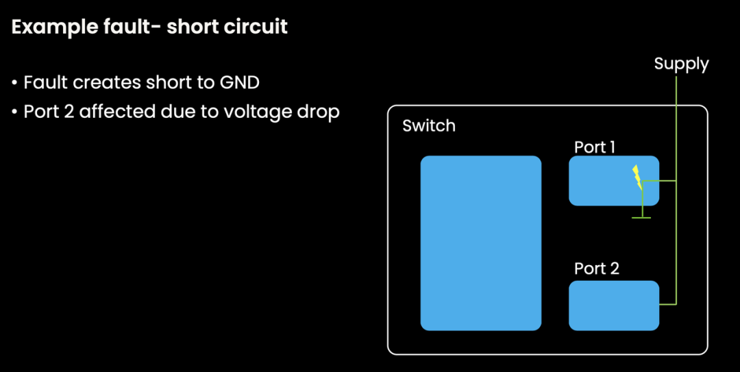 ◎ 对于短路故障,通过独立电源供应、子模块电流限制以及过热检测与自动断电机制,可以在毫秒级切断故障区域的供电,防止电压跌落影响其他端口。