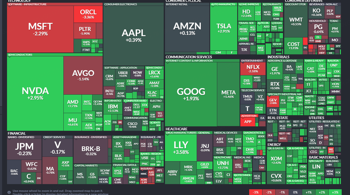 AI半导体领涨: $英特尔(INTC)$ +11.7%, $美国超微公司(AMD)$ +7.7%, $ARM Holdings(ARM)$ +6.3%;