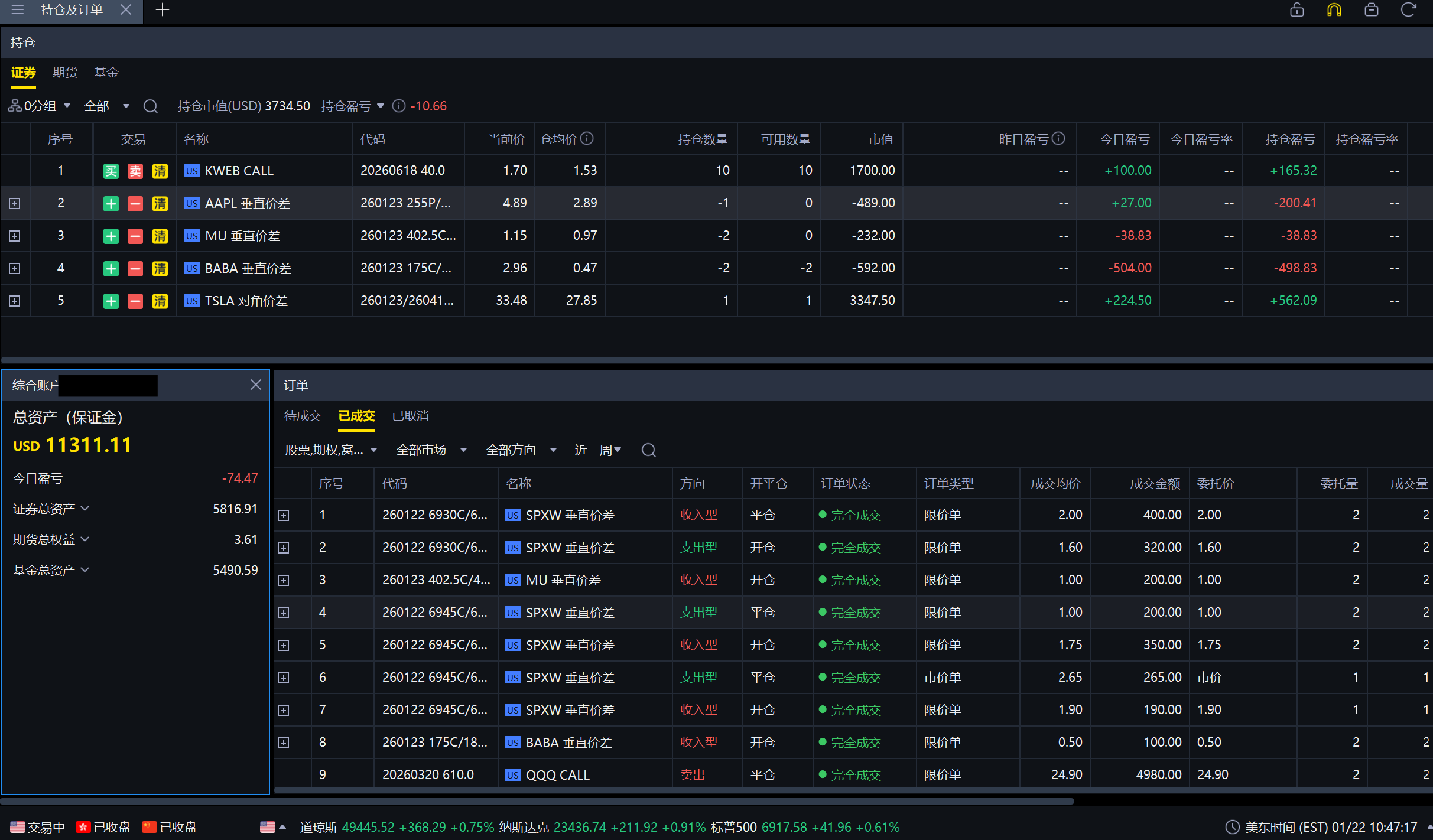 • tsla、kweb持续盈利,继续看好