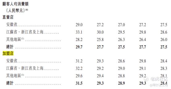 顾客人均消费额也显示,加盟店的人均消费金额从2022年的31.5元持续下降至2025年前8月的28.4元。形成鲜明对比的是直营店,自2023年至2025年前8月基本保持在27.7元~27.5元,较为平稳。