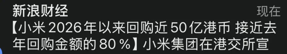 2026年1月至今,小米已累计回购超18亿港元,位列港股第二,仅次于腾讯。25亿新计划叠加,年内回购总额有望突破40亿港元级别。太难了😭