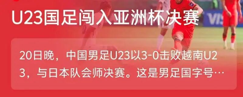 这是U23亚洲杯举办以来,中国队首次摸到决赛地板,也是中国男足国字号球队22年来有机会再度争冠。不少网友感慨:中国足球,或许真的要触底反弹了。