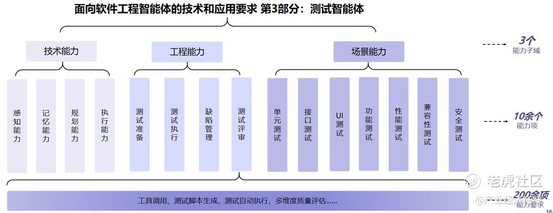 测试场景细化:针对UI、接口、性能、安全等七大专项测试提出能力要求,为企业在不同业务深度下的AI应用提供了标准化参照。