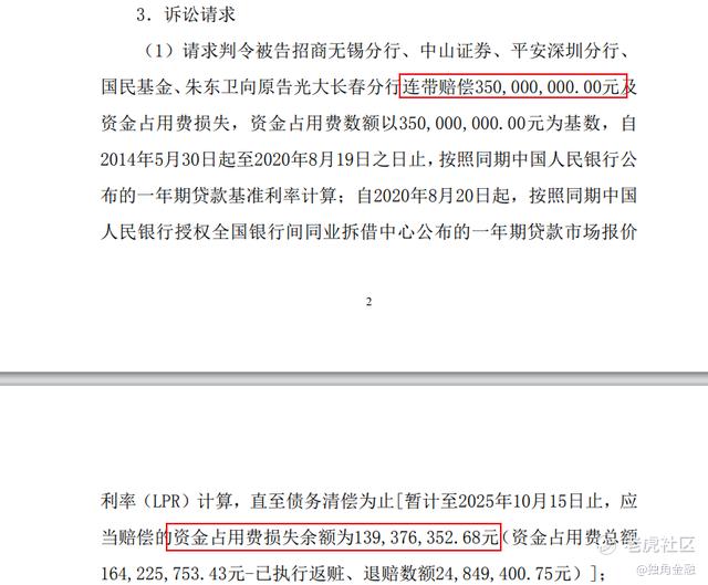 因此,原告的诉讼请求包括中山证券、招行无锡分行在内的4家金融机构,被告连带赔偿3.5亿元及资金占用费,合计金额4.89亿元。