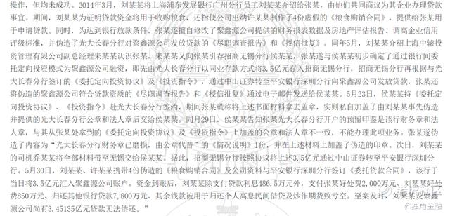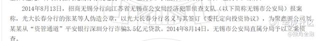 2014年8月13日,招商无锡分行向无锡市公安局报案称,光大长春分行的张某等人伪造公章,以光大长春分行名义与其签订《委托定向投资协议》,为聚鑫源米业刘某某从“资管通道”平安银行深圳分行诈骗3.5亿元贷款;第二日,案件被立案侦查。