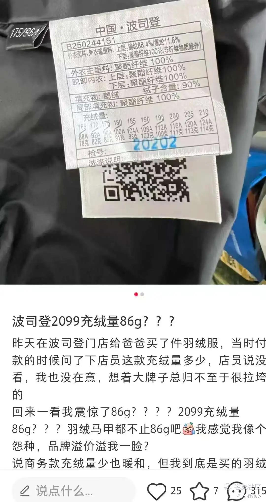 两千元买件波司登羽绒服,含绒量只有86克——当这个数据被网友扒出时,瞬间引爆舆论。有网友调侃“这是卖布料送羽绒”,也有人质问“国民品牌的溢价,凭什么这么离谱”。