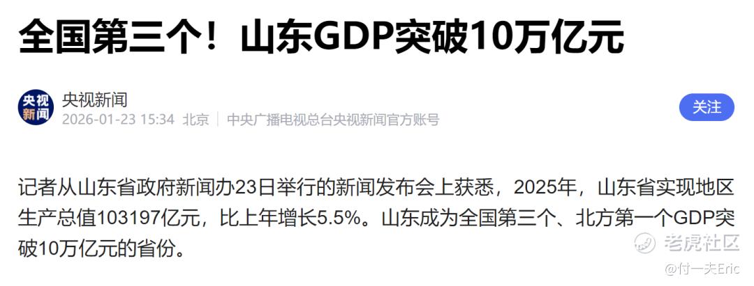 根据媒体报道,2025年山东省实现地区生产总值103197亿元,比上年增长5.5%。如此一来,山东成为了继广东、江苏之后全国第三个踏入“十万亿俱乐部”的省份,同时也是北方第一个GDP突破10万亿元的省份。