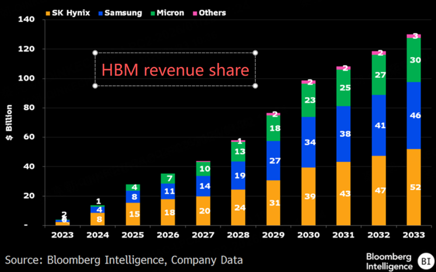 市场格局:内存芯片是高度寡头垄断市场, $Samsung Electronics Co., Ltd.(SSNHZ)$ 、 $SK Hynix, Inc.(HXSCL)$ 、 $美光科技(MU)$ 三家公司主导全球供应,其中只有前两家韩国企业供应AI服务器必需的 $HudBay Minerals Inc(HBM)$(高带宽内存)芯片。