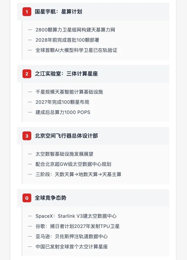 与此同时,马斯克、贝佐斯、谷歌都在加速布局太空数据中心——这场算力上天的全球竞赛,中国正在抢占先机。