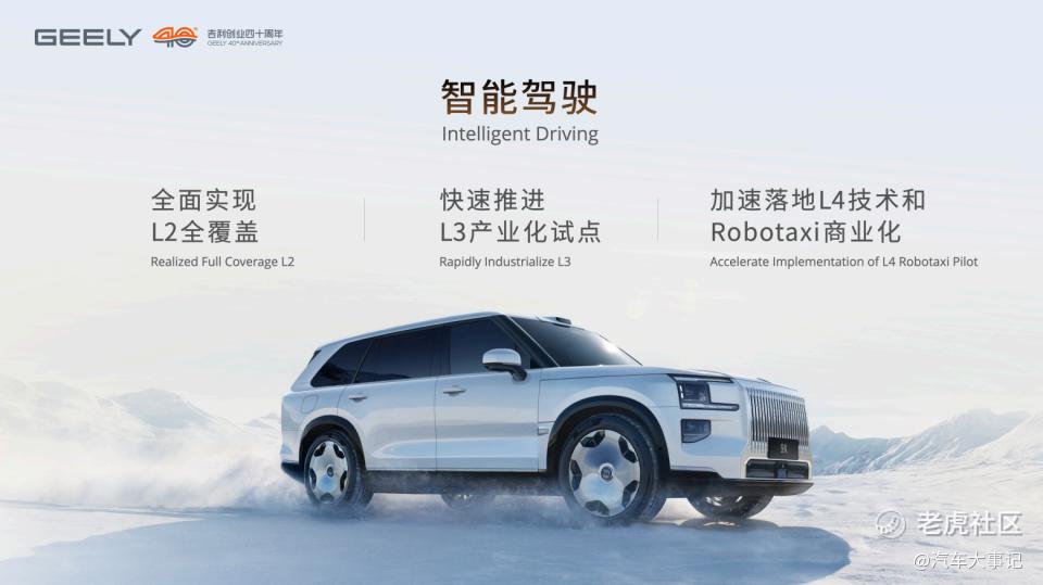 在该战略下,吉利的千里浩瀚智能驾驶不会只存在于某一个高端品牌,而是具备向下快速扩散的能力。