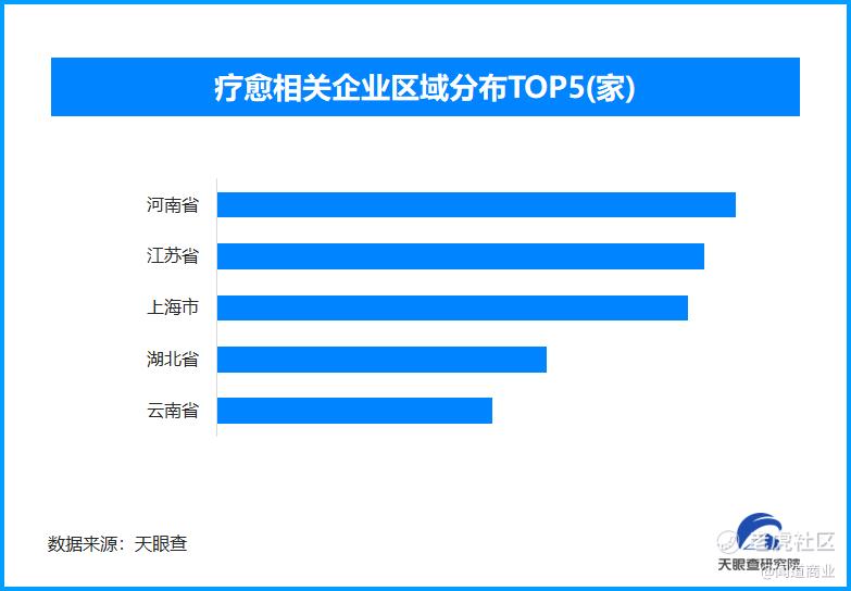 天眼查专业版数据显示,截至目前我国现存在业、存续状态的疗愈相关企业超11万家。其中,2025年新增注册相关企业超3.7万余家。从区域分布来看,河南省、江苏省、上海市疗愈相关企业数量位居前列,三个省市数量总和超过3.8万家,占企业总数的35.17%。