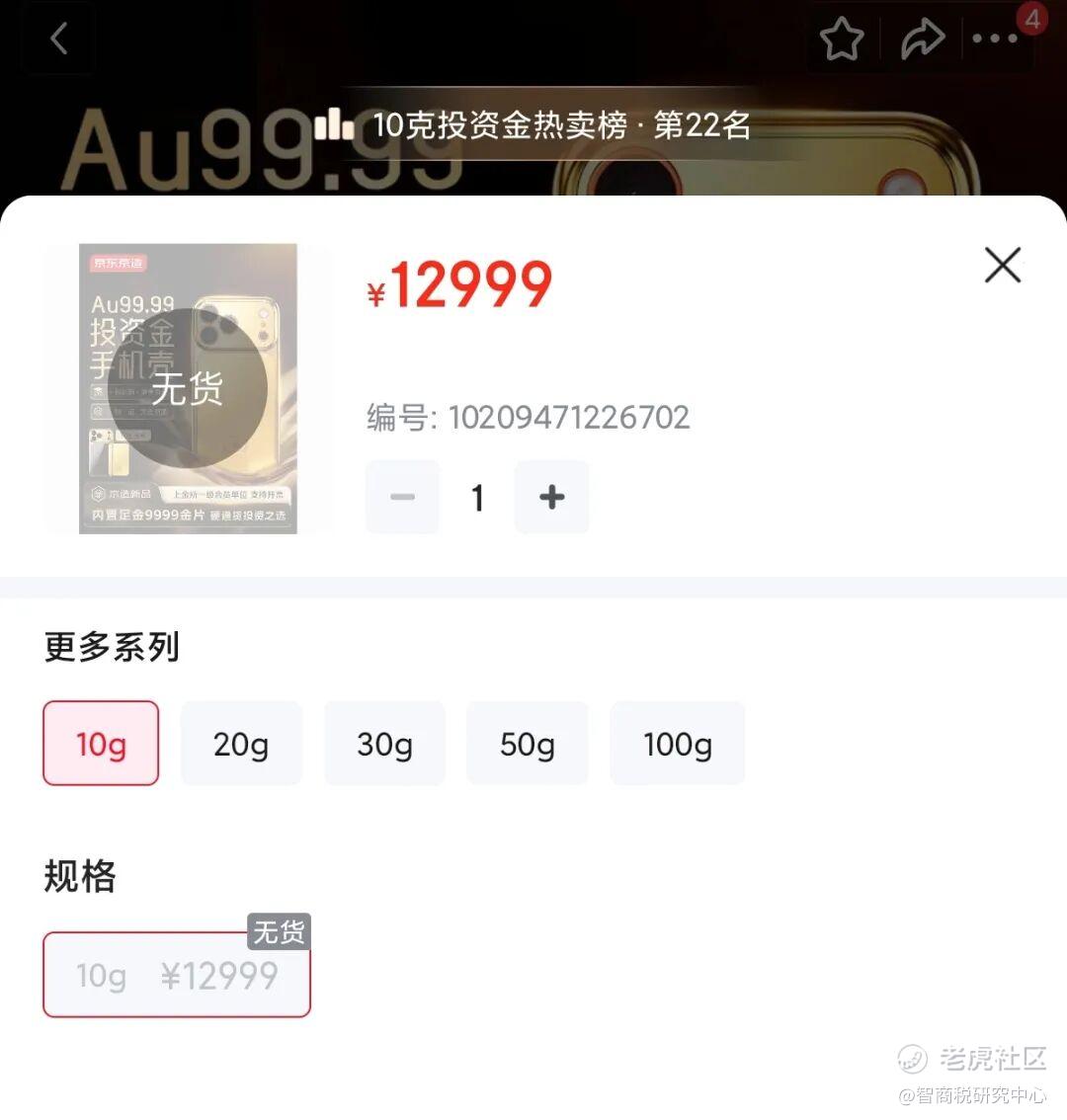 更合适的价格,引来了趋之若鹜的投资者,截至发稿,京东京造10克的黄金手机壳,全国很多地区均显示无货。