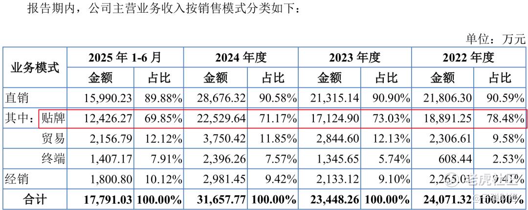 报告期内,公司贴牌销售模式占主营业务收入的比例分别为78.48%、73.03%、71.17%及69.85%。
