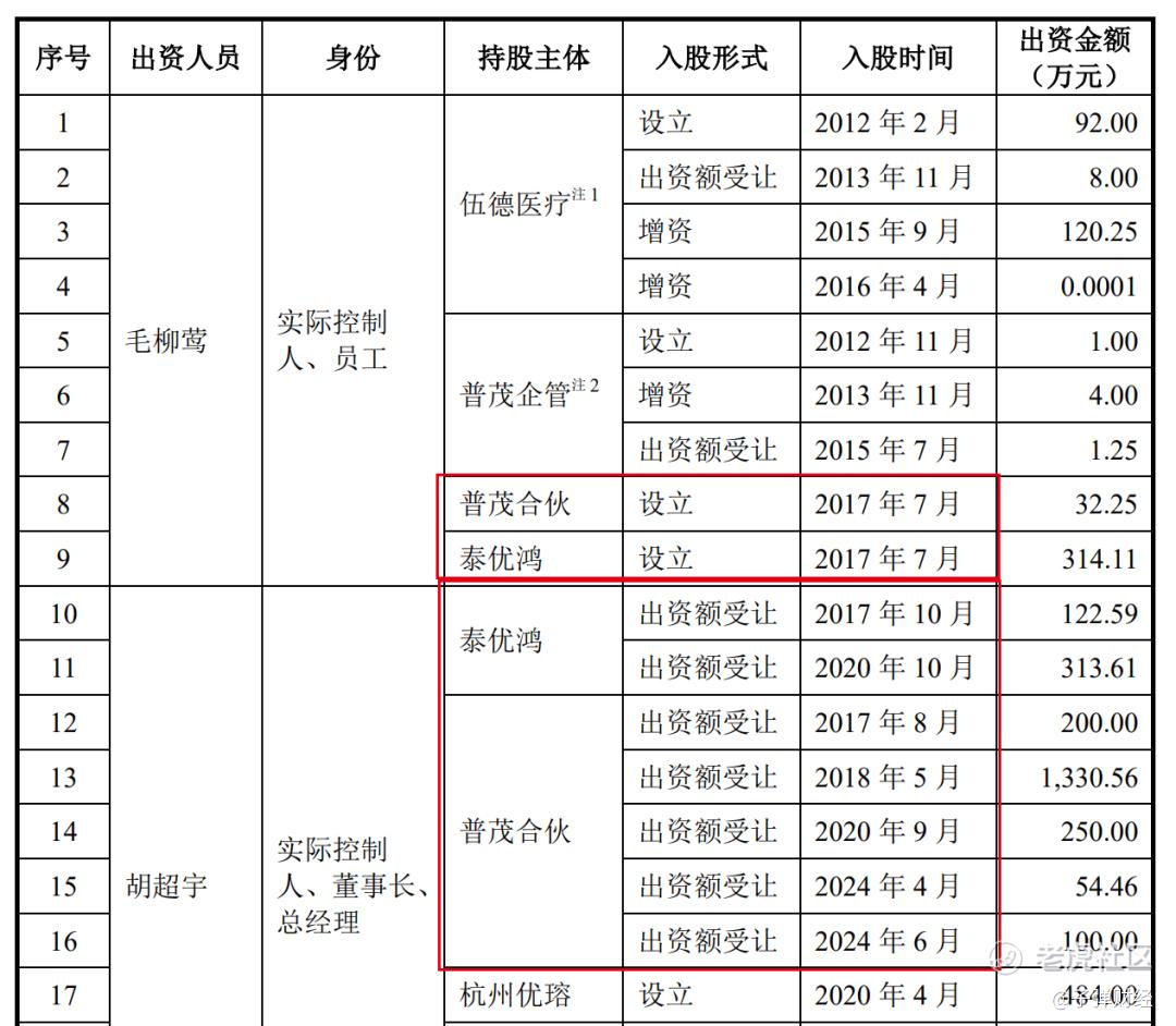 2017年7月,普迈企管、普茂企管的股权分别整体平移至泰优鸿、普茂合伙。此后,毛柳莺的配偶胡超宇通过收购的方式,入股泰优鸿、普茂合伙。