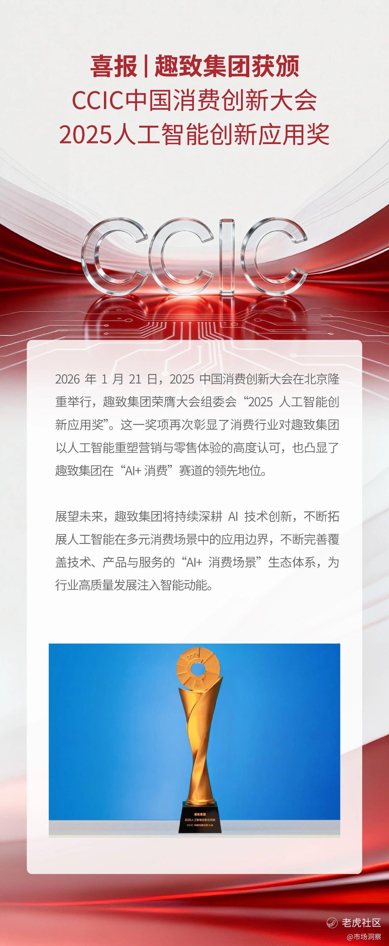 喜报 | 趣致集团获颁CCIC中国消费创新大会2025人工智能创新应用奖