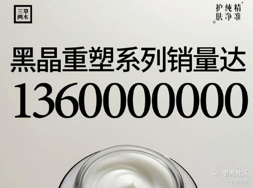 例如黑晶套盒销量宣称13.6亿,到底是销售额还是累计套数根本没有提。而一些三草两木的代理商在社交媒体上发布的黑晶抗老系列终端销售额为1.36亿元。如此自相矛盾,在消费者看来三草两木就像个草台班子。