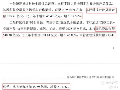 科技金融方面,青岛银行推出20多款针对科技企业的特色金融产品。截止2025年9月末,科技金融贷款余额为303.81亿元,比2024年末增长17.58%。