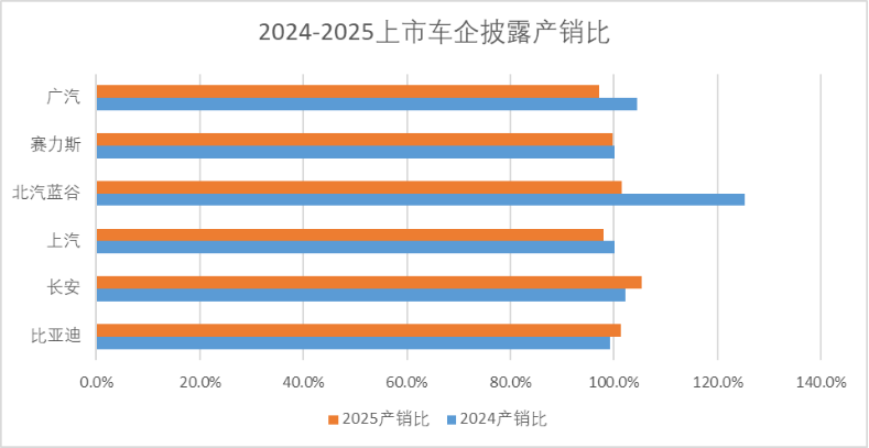 图:2024-2025上市车企已披露产销比,来源:企业产销快报