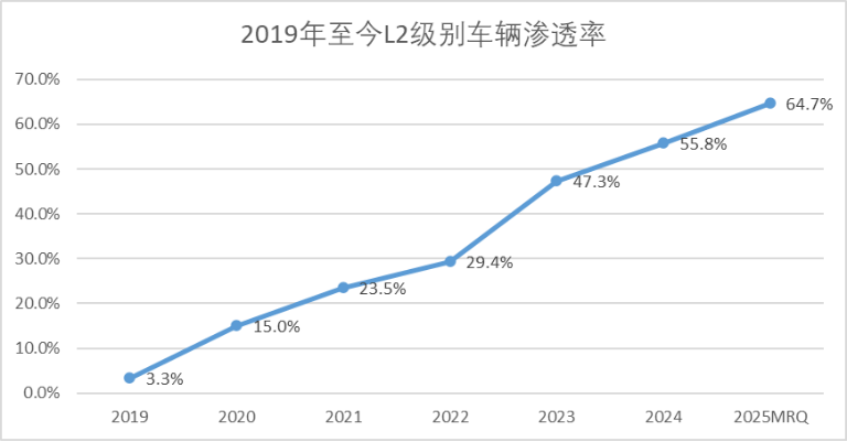 图:2019至今L2级别车辆渗透率,来源:西部证券