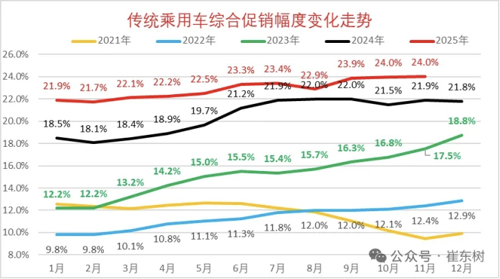 图:传统乘用车综合促销幅度变化走势,来源:崔东树公众号