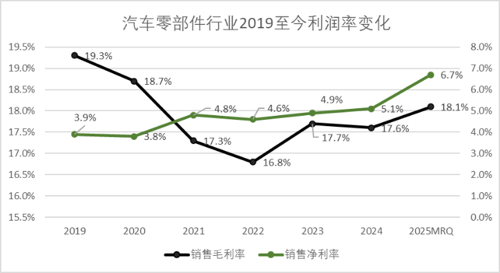 图:汽车零部件行业2019至今利润率变化,来源:企业财报