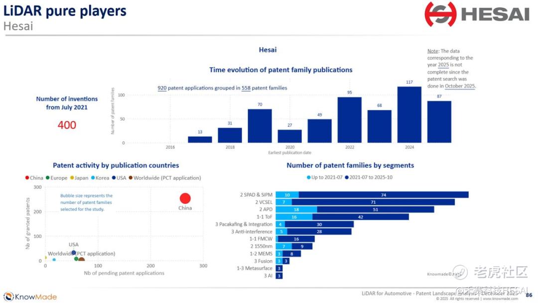 专利布局是技术领先的基石。报告指出,2016 年至今,禾赛共提交 920 件专利申请,形成 558 个专利族,其中 400 件为 2021 年 7 月以来新申请的发明专利,展现出强劲的创新节奏。