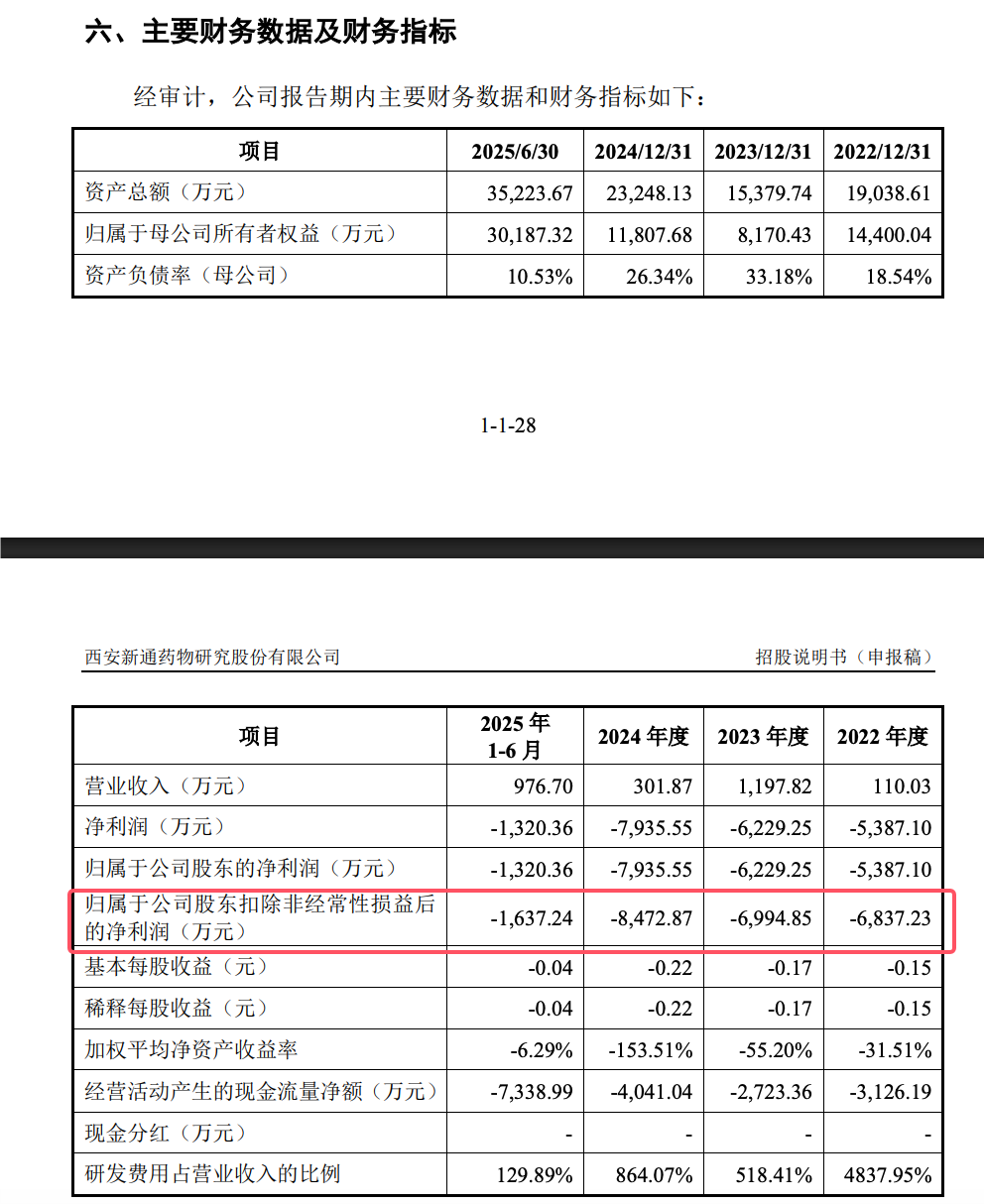 3 、IPO 说明书显示,公司目前有一款新药甲磺酸普雷福韦片于 2024 年 10 月获批已批,但销售收入 2024 年只有284.03元,2025 年 1-6 月增加很快不过也只有965.25元。